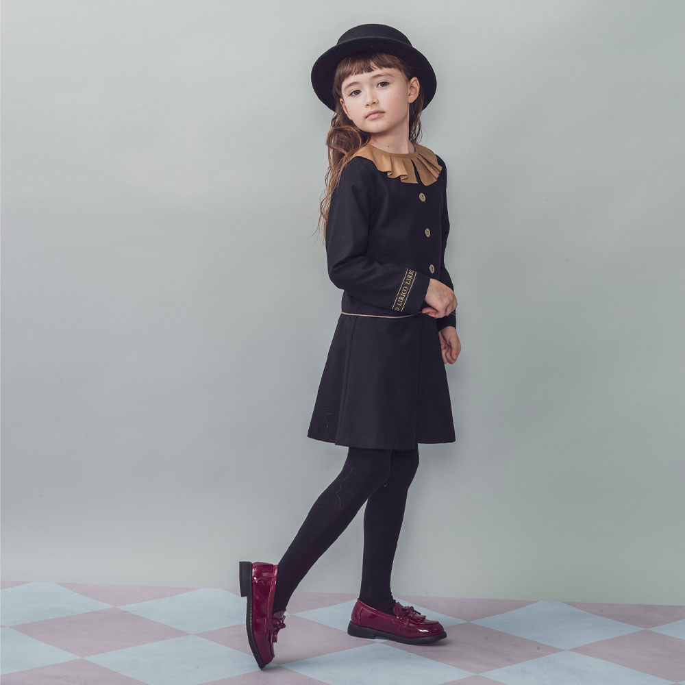 フリルつけ襟 ラベル柄ワンピース[ボヌール]