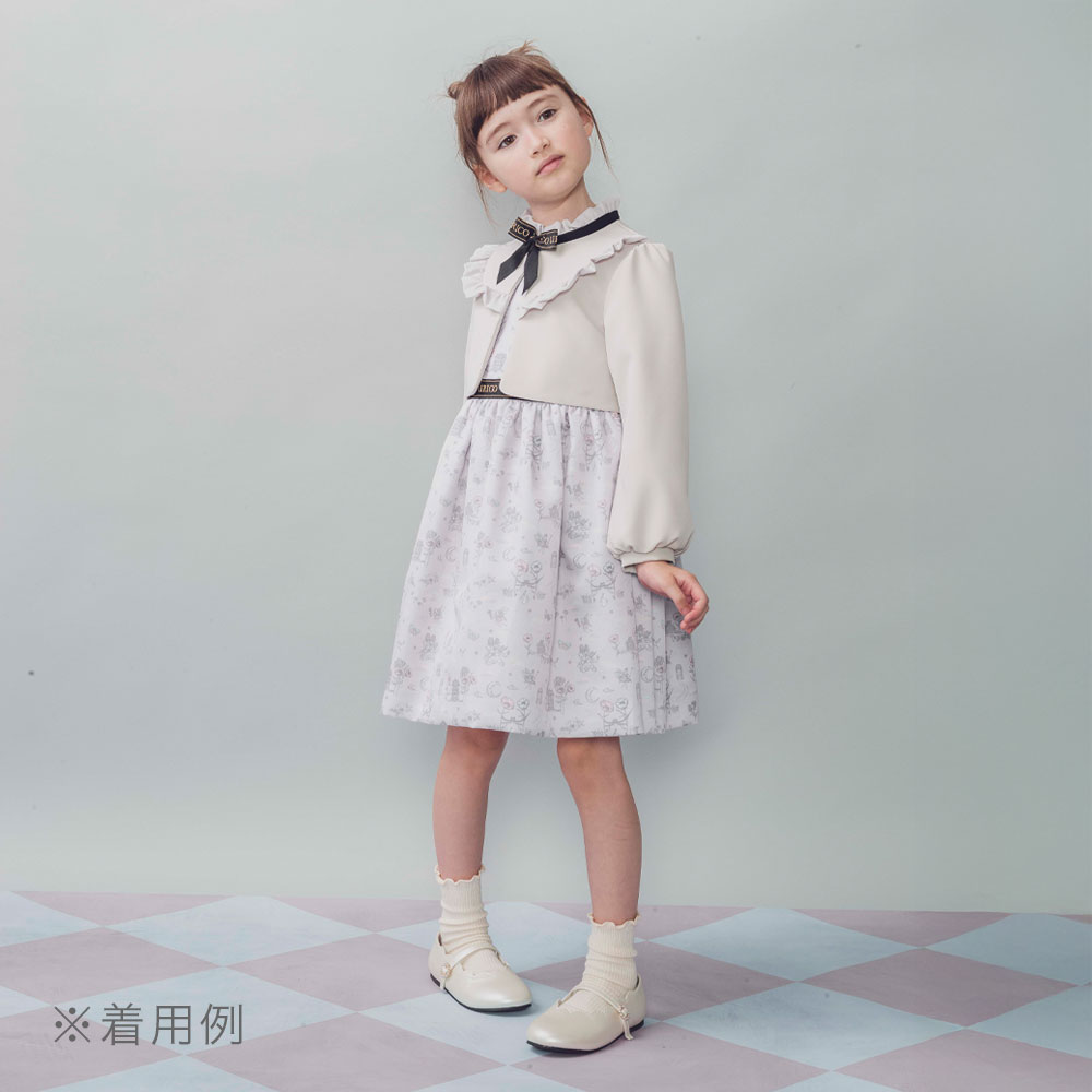 リボン付き フリルノースリーブ&ラベル柄スカート ボヌール(ベージュ)