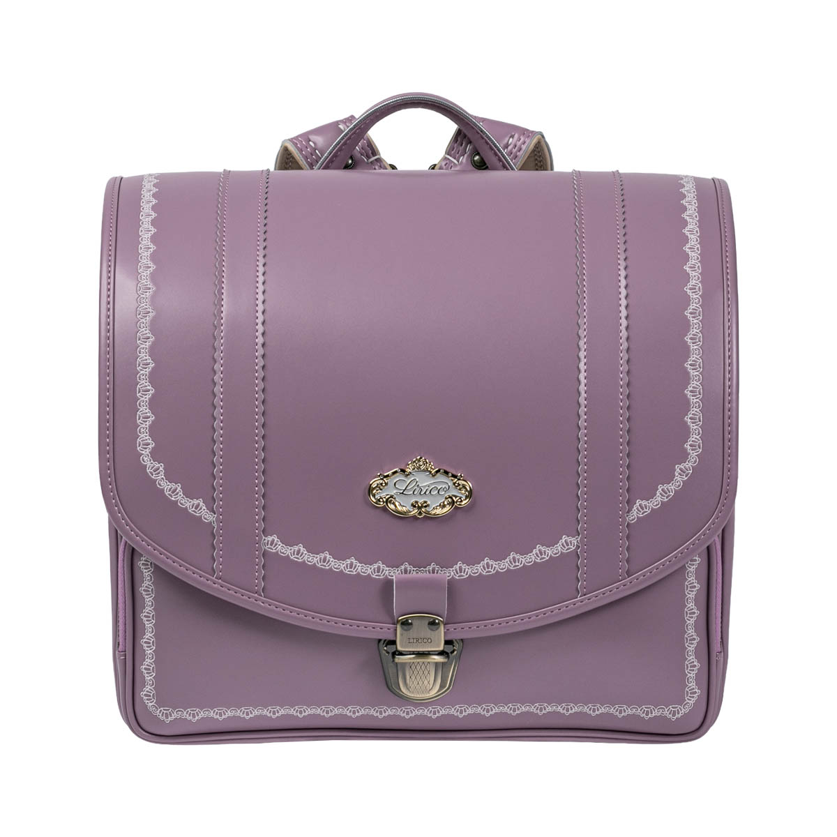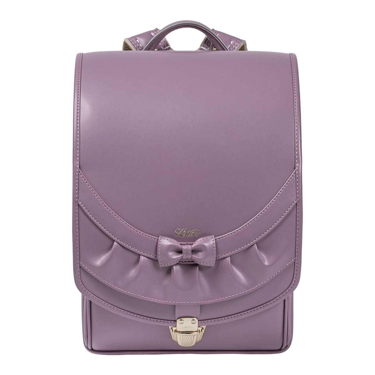 落ち着きのある大人っぽさが際立つ色合いの「スミレ」カラーのクラリーノの生地を使用した特別仕様の“マネージュ”“リボンフリル”“サッチェル”の3種類を、阪急コラボ商品として受注販売いたします。 ※LIRICO公式WEB、ショールーム、展示会での販売・展示はございません。 ※コラボランドセルは2027年3月迄にお届けいたします。