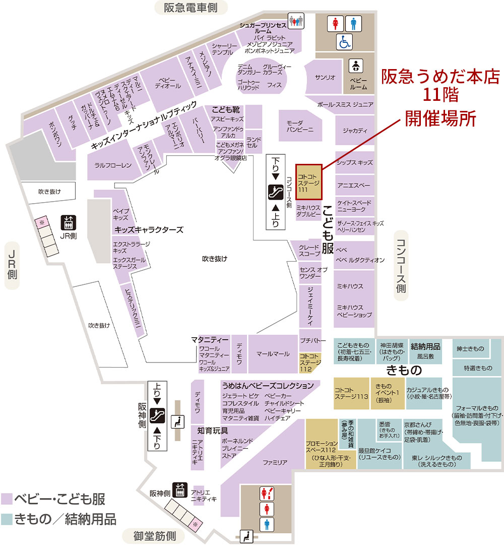 〒530-8350 大阪府大阪市北区角田町8−7阪急うめだ本店 11階 ベビー・子供服売場コトコトステージ111