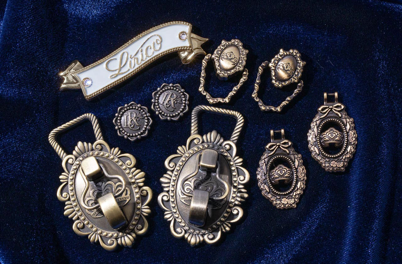気品を感じる上品な輝き。凛とした輝きを放つゴールドやアンティーク加工のされたメタルパーツたち。“Lirico”のフラッグ型ロゴプレートは傾斜のある素材に流し込み加工を施した高い技術を要する逸品。その一つずつにこだわりを詰め込んだ繊細なパーツに、LIRICOの妥協のない物づくりに対する想いを感じていただけます。